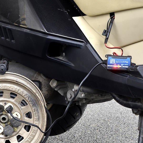 バッテリースーパー世界屋 12vバイク用専用バッテリー充電器 税別3 900円 車両ケーブルも付属しているので車両に乗せたまま充電できます バッテリーとセット購入で1 000円引になります